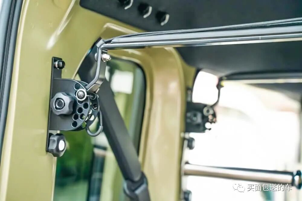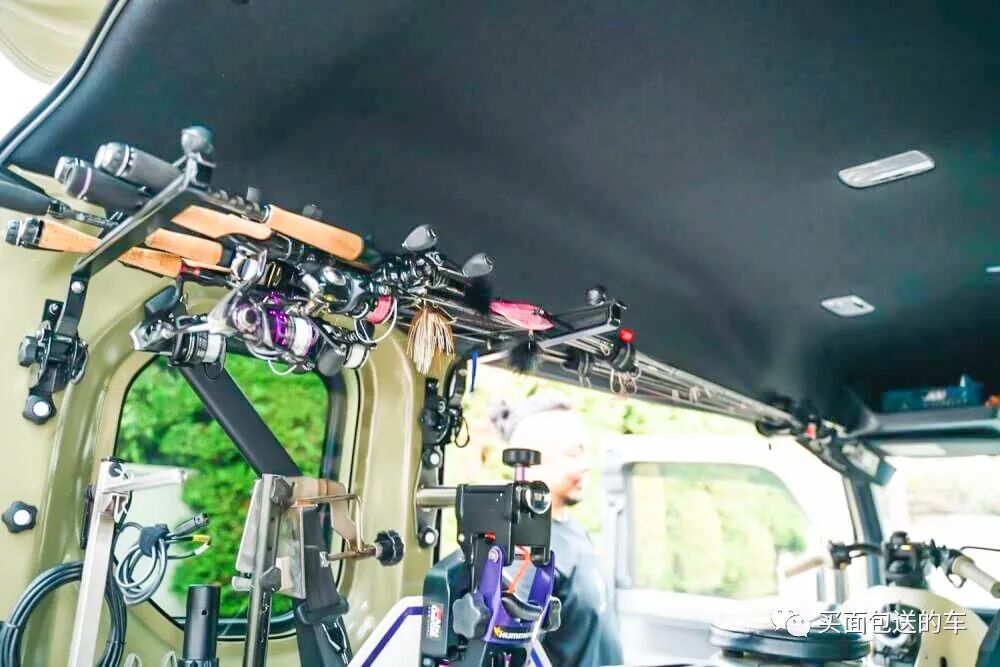 D柱车顶部横杆通过调节锁孔作为鱼竿的收纳支架。
