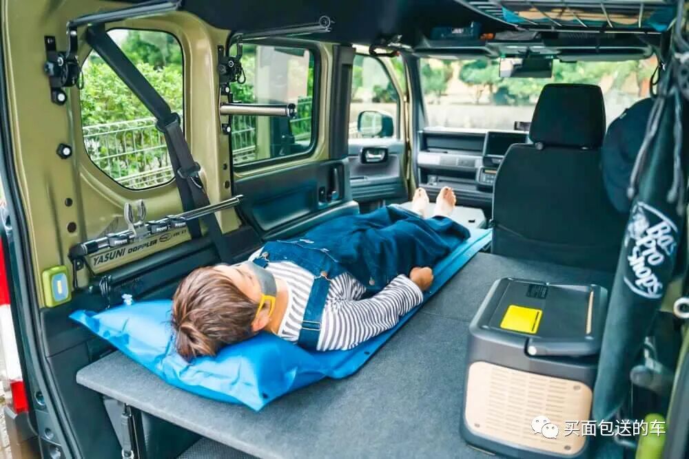 如需要车中泊,用折叠的床板就可以构建一个L型的床面空间。