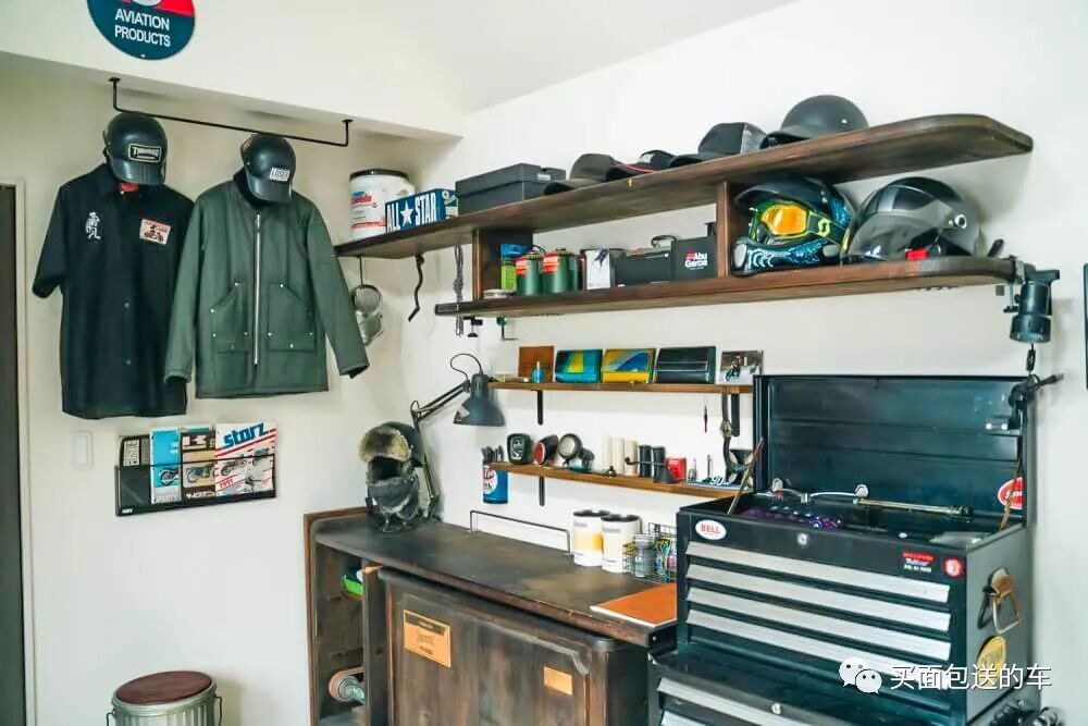 堀琢磨先生在哈雷戴维森的经销商店从事机械维修工作已经数十年,算是机车和户外的资深玩家,家里展示的哈雷主题的头盔,以及意大利的BETA工具收纳箱。