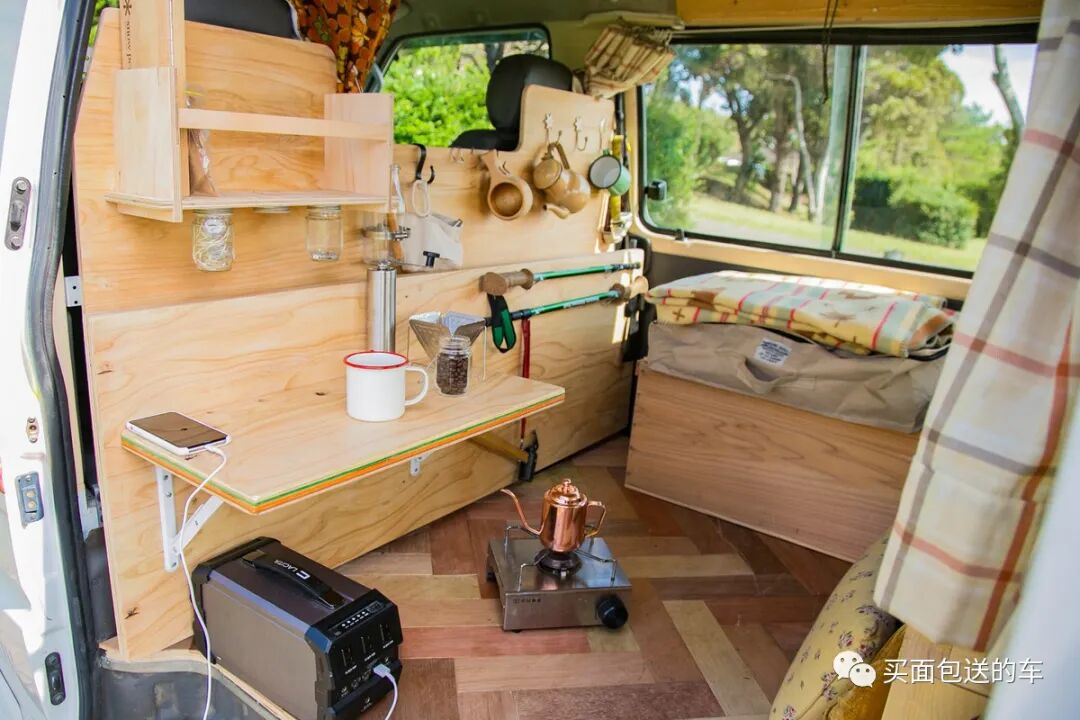 “因为经常穿梭于露营活动的营地,所需要的户外设备越来越多,于是用一辆面包车就能满足所有需要,携带常用或是不常用的装备,不要提前预订酒店,车停在那里就能实现移动办公或者是在车中过夜”。