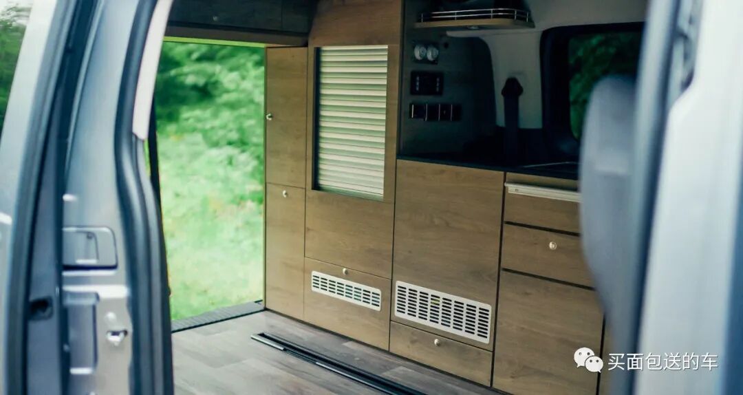 后排座椅底座有近1米行程的滑轨可前后移动,原厂配备了水电集成柜体。