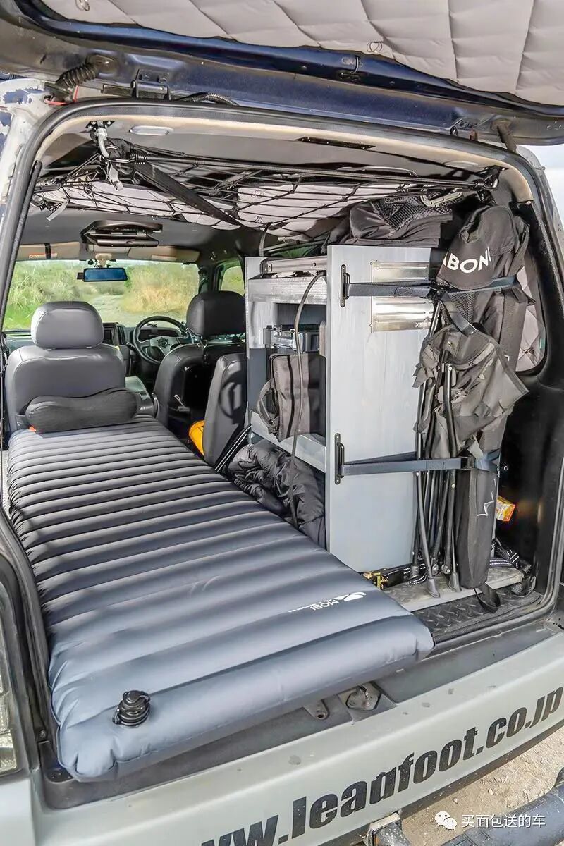 简单布置的户外单人充气垫和木质柜体就能满足车中泊需要了。