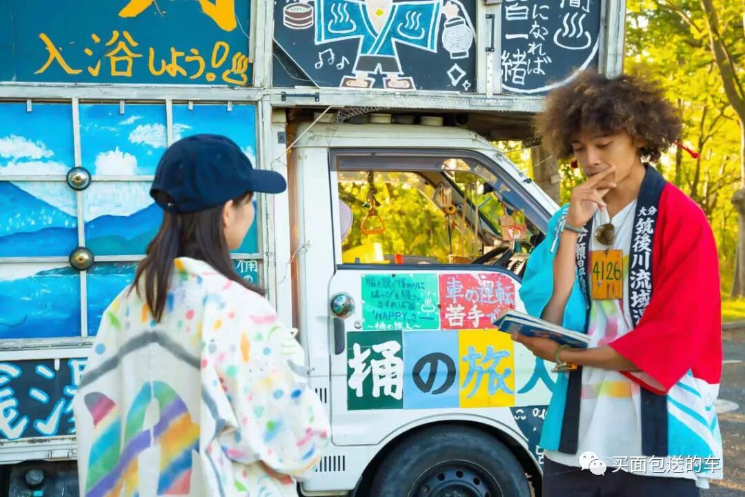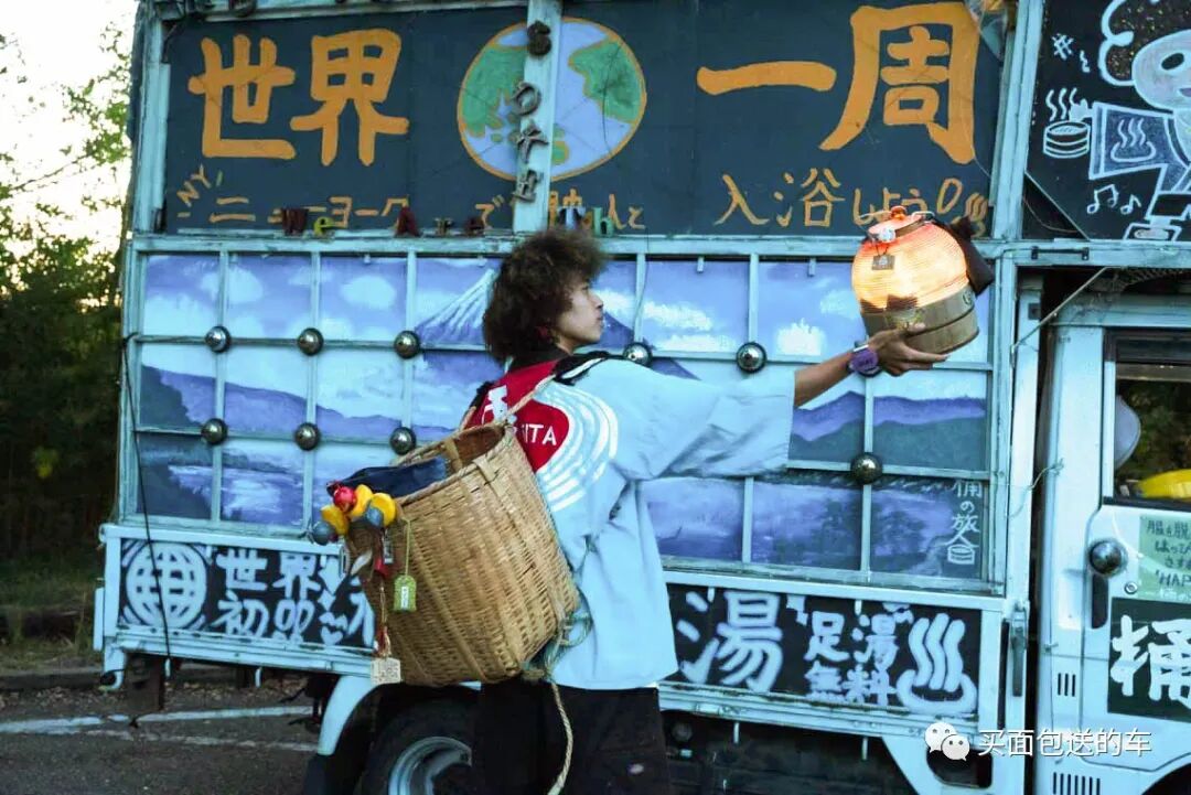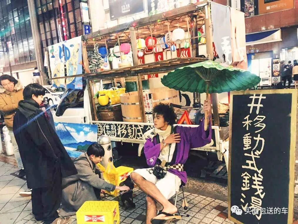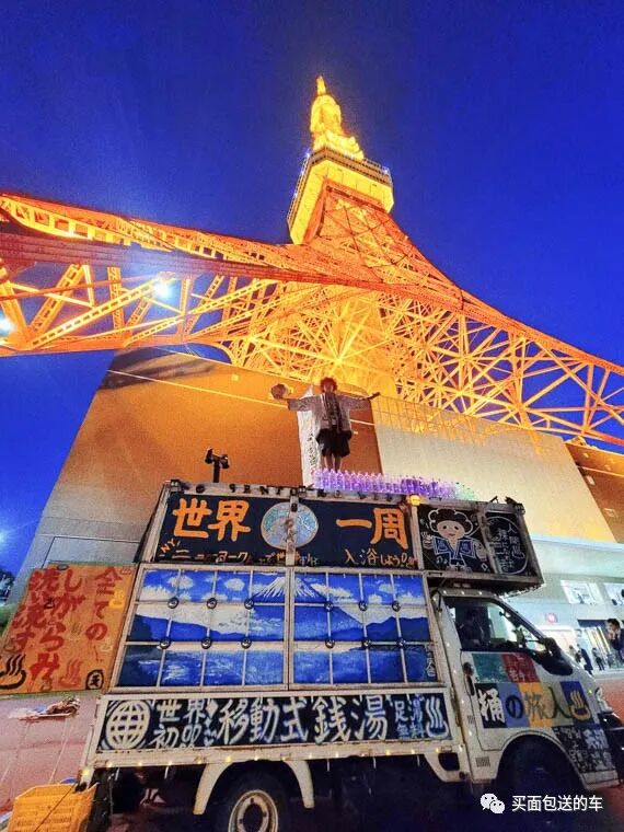 每到一个城市的时候都会和游客合影,三宅天马用这种方式推广日式温泉酒店文化,于是就有了驾驶“移动式钱汤”进行环球旅行的计划。