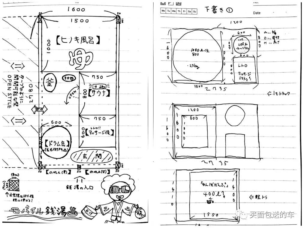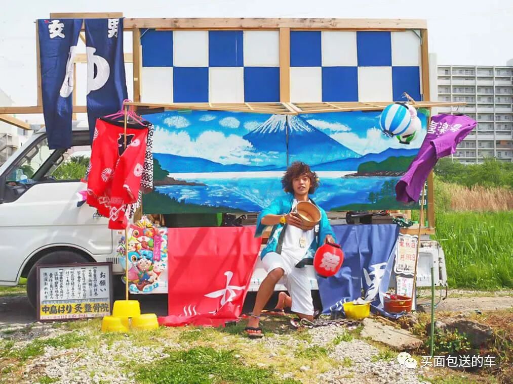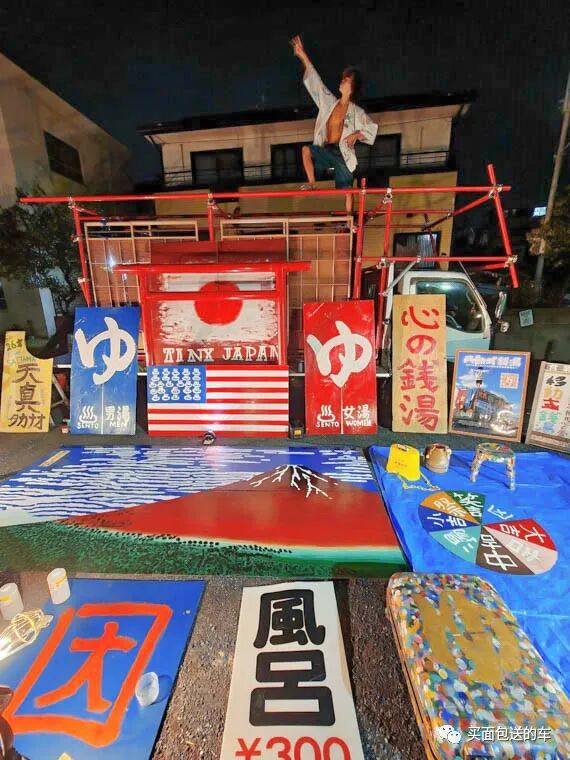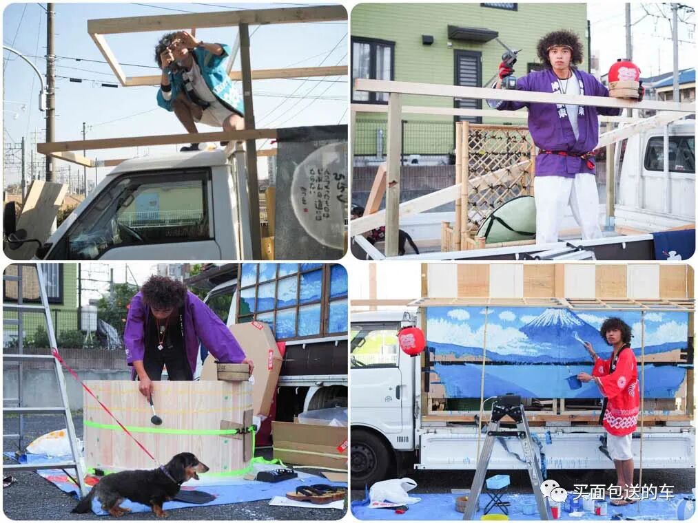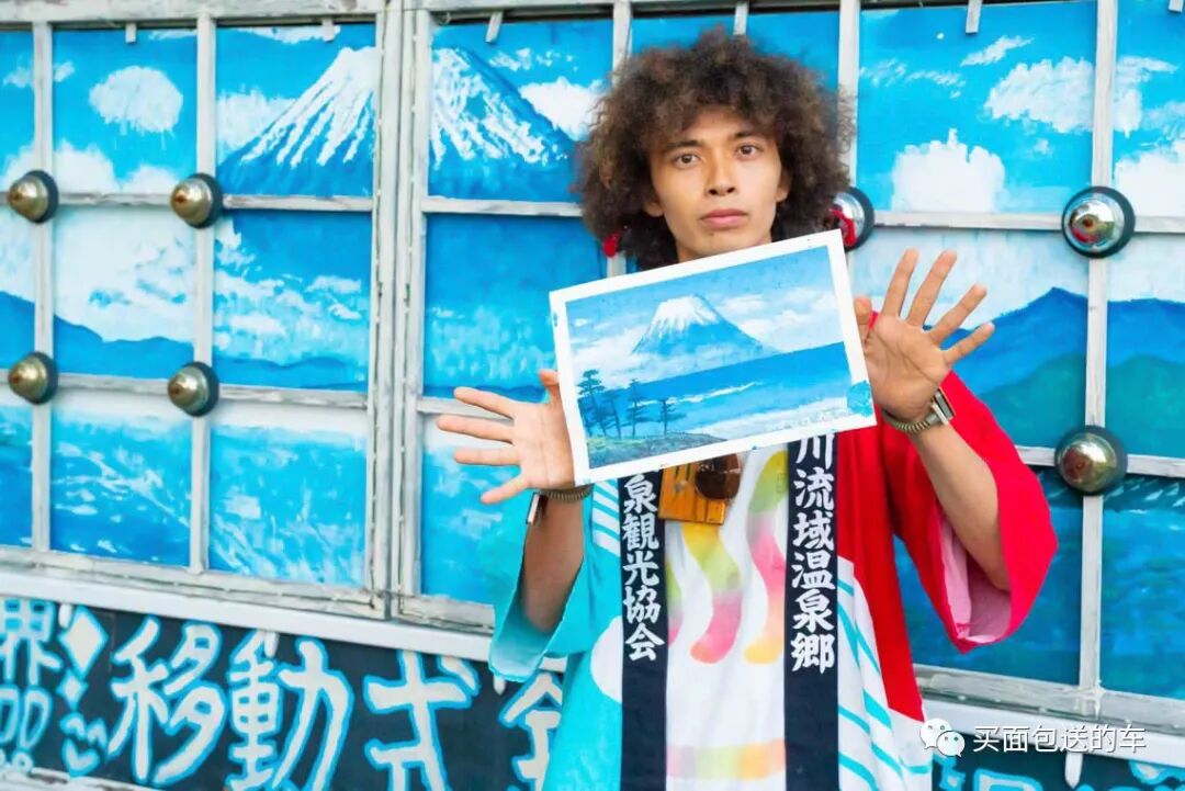 2019年5月这台“移动式钱汤”车完工,前后用了半年的时间,三宅天马先生手绘了货箱侧面的的墙绘,让人第一眼看上去就像来到了温泉酒店的门帘前。