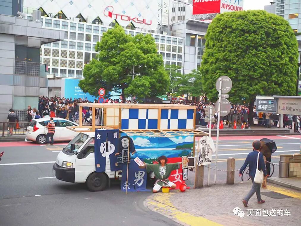 在涉谷的闹市街头营业的当天,路人都很好奇这是怎么回事。