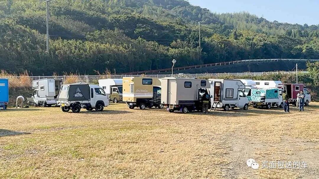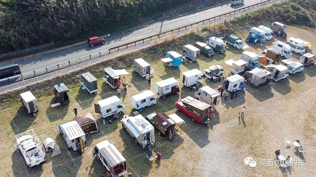 这是11月初在爱知县田原市的西崎露营地举行的tracan2023轻卡房车营地活动,特别限定为卡车或是轻卡加装独立的模块化房屋而构建的露营房车种类,而 tracan这个类型的房车可以看做是TRUCK+CAMP“卡车露营”的合成词语。