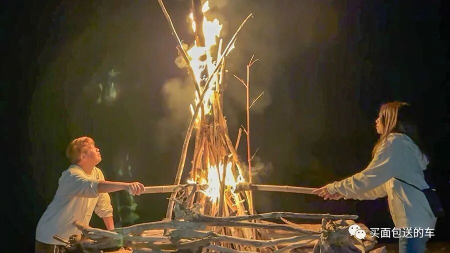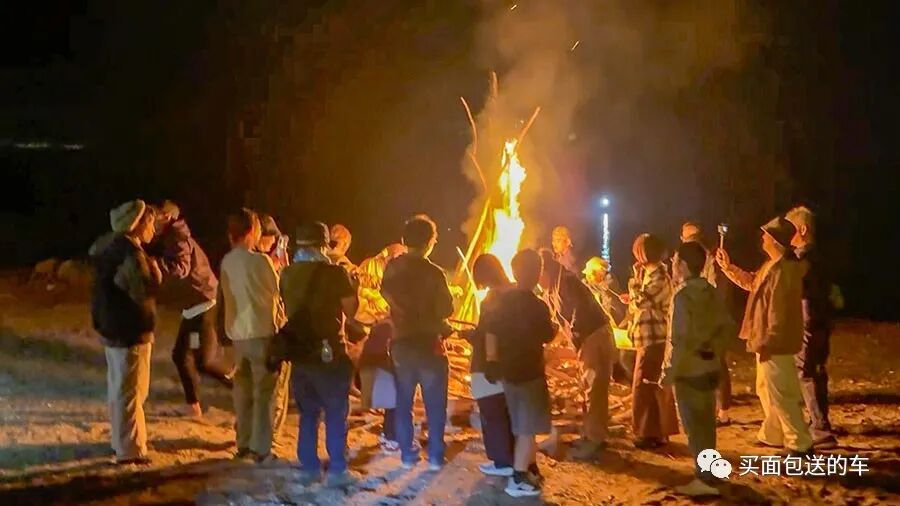 Taro先生和太太Maki女士亲自点燃篝火,让夜间的活动氛围达到高潮(完)。