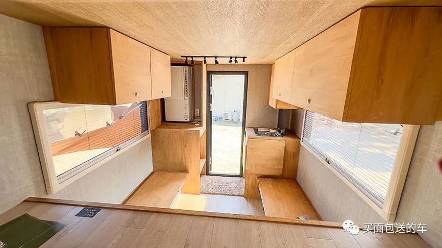 YADOCARRY 的房车模块内部有很高的完成度,最大限度在轻卡的后尾箱内提供一居室的居住环境,提供了FF柴油加热器和水电模块。
