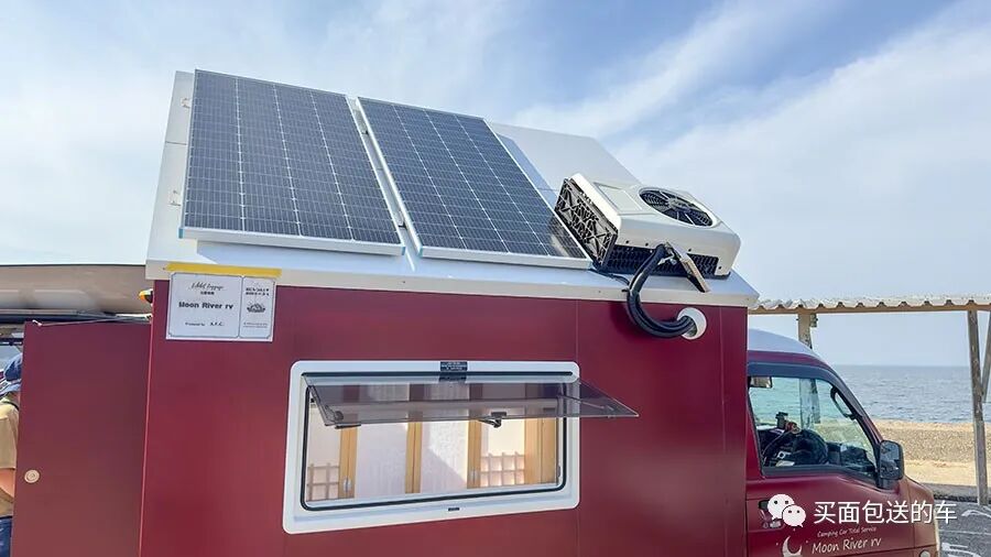 车顶设置了1600瓦的太阳能电池板和驻车空调外机。