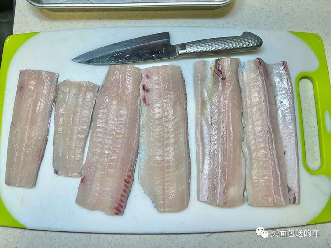 带鱼没有鱼鳞,处理起来很方便,直接切割为几段后去除掉鱼骨。