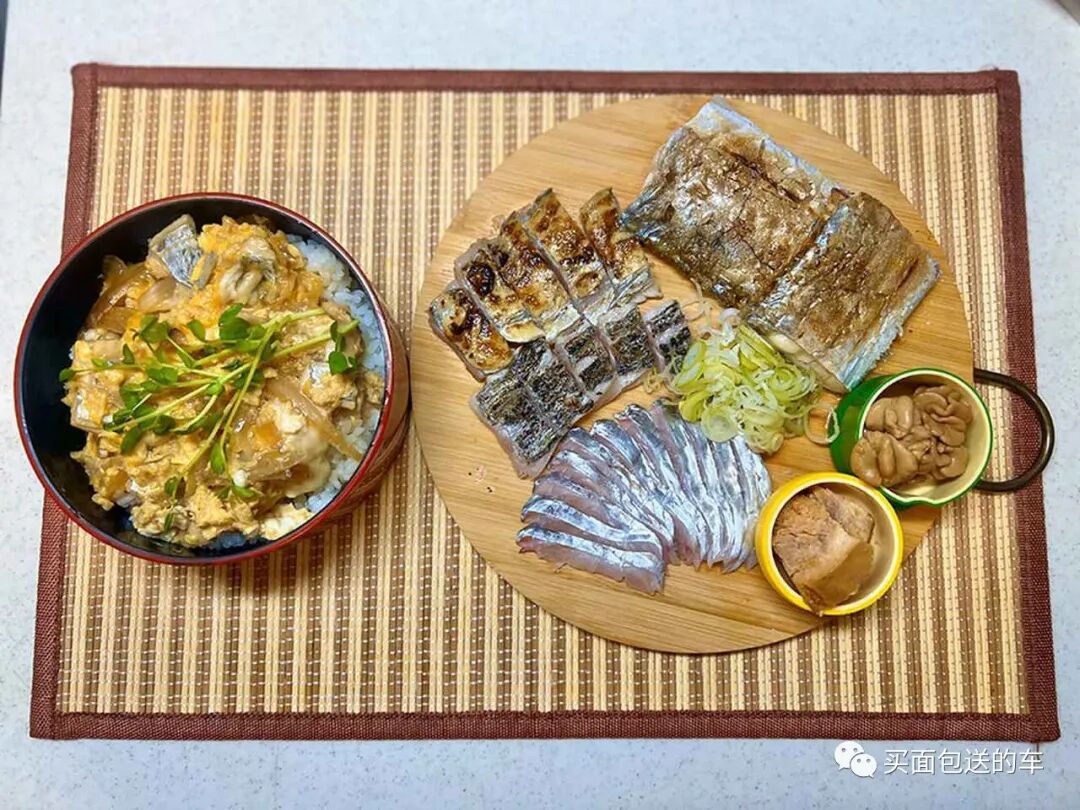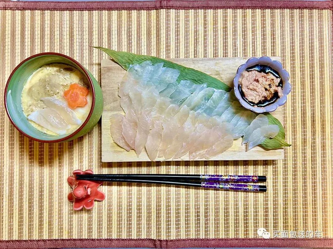 完成后的清蒸鸡蛋鱼肝脏和鱼肉刺身。