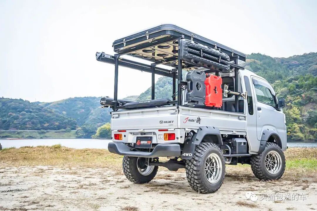 作品来自于“但东自动车株式会社”,在之前的大发HIJET露营车上,加装了涡轮增压器,并且附上了更多改装细节,关于主理人 岩出公直 为了满足自己的冲浪爱好而打造的这辆“武士皮卡”,可参阅往期文章: